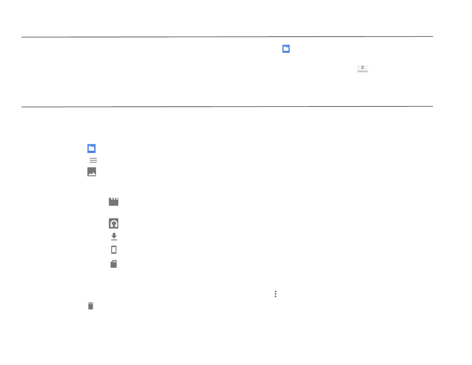 • To delete files from the folders above, press and hold an item or tap 3 dots menu to select all items in the folder.