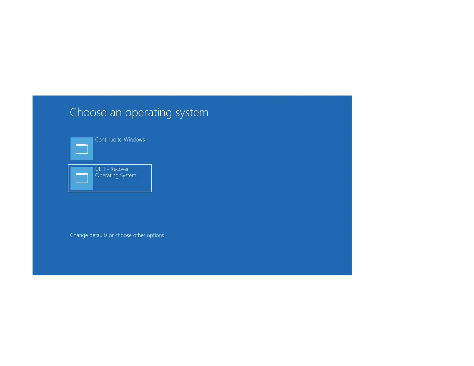 3. When the following screen appears, tap to select “UEFI – Recover Operating System”.