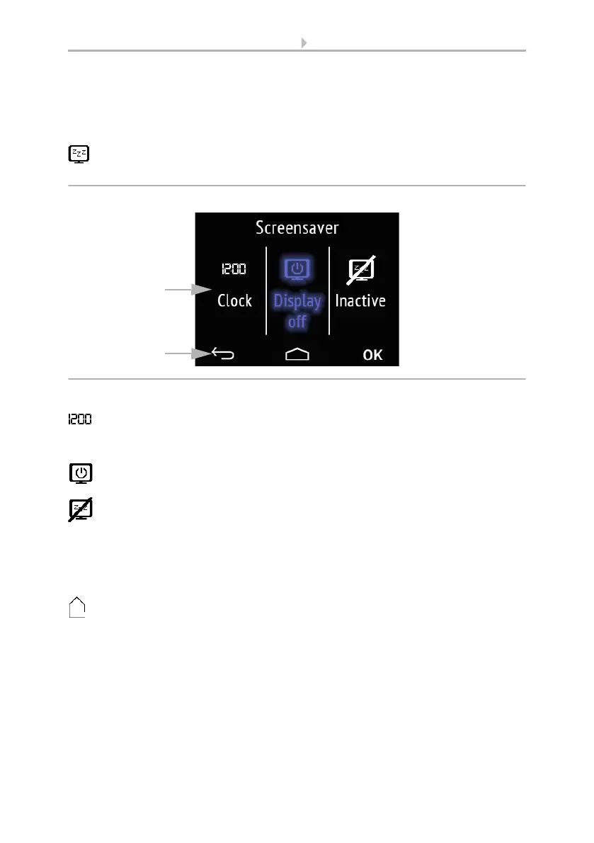 Tap the screen saver symbol to select the type of screen saver or switch the