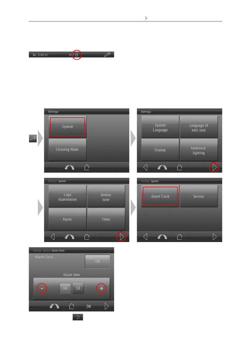The symbol is also a button that takes you directly to the alarm clock menu. If the alarm