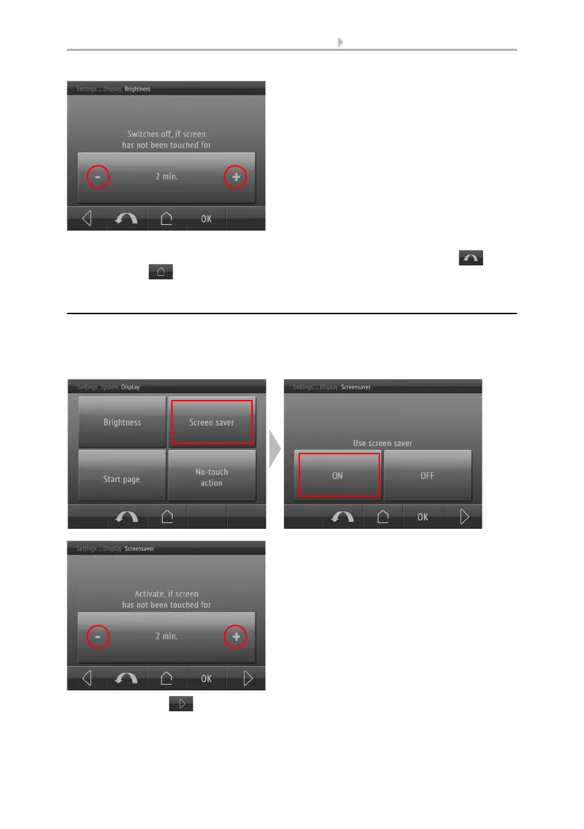 The screen saver is displayed if the display has not been touched for a pre-set period