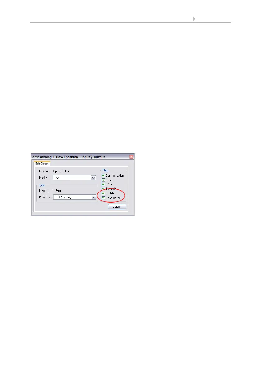 If further objects are to be sent, please set the flags “Update“ and “Read on Init“ for