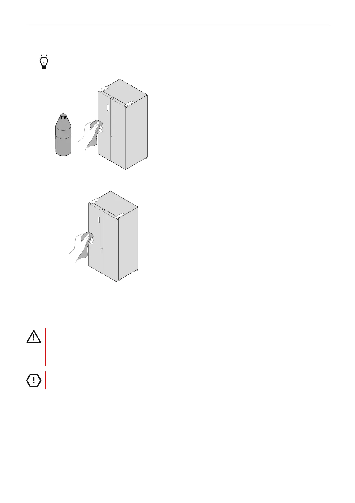• Unplug the fridge freezer before cleaning. There is a risk of electric shock.