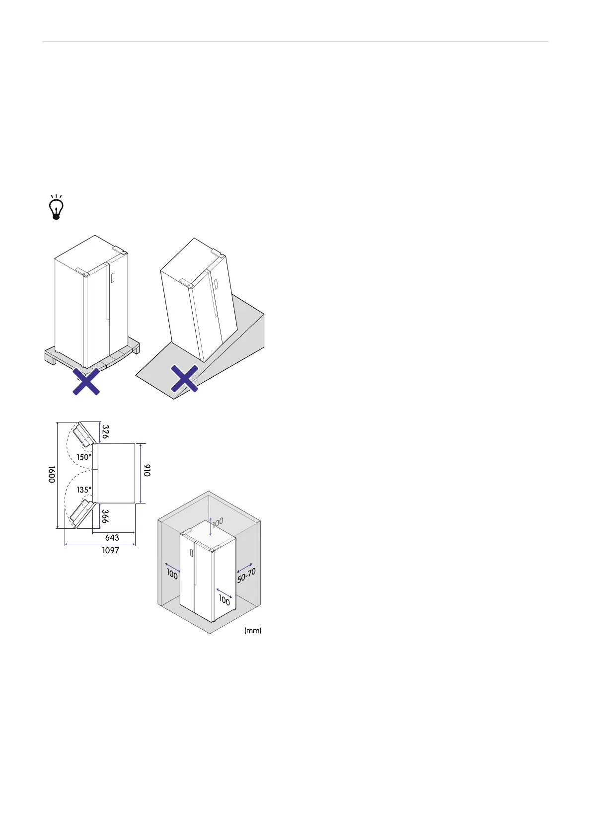 • Leave enough space to allow the doors and drawers to open easily, in accordance with the dimensions.