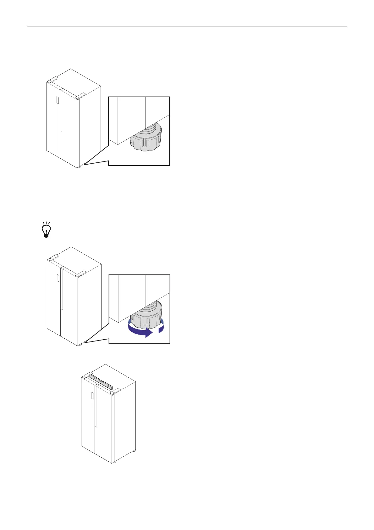 • Turn the feet counter-clockwise to raise the fridge freezer.