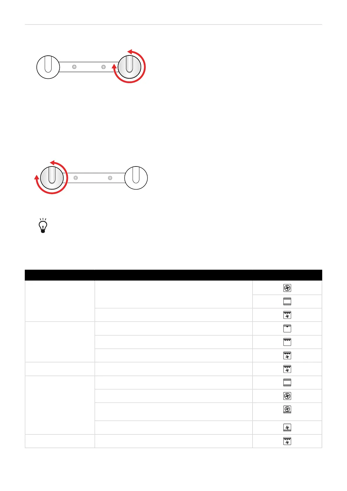 Find the most suitable oven cooking mode for your needs by using the following table.