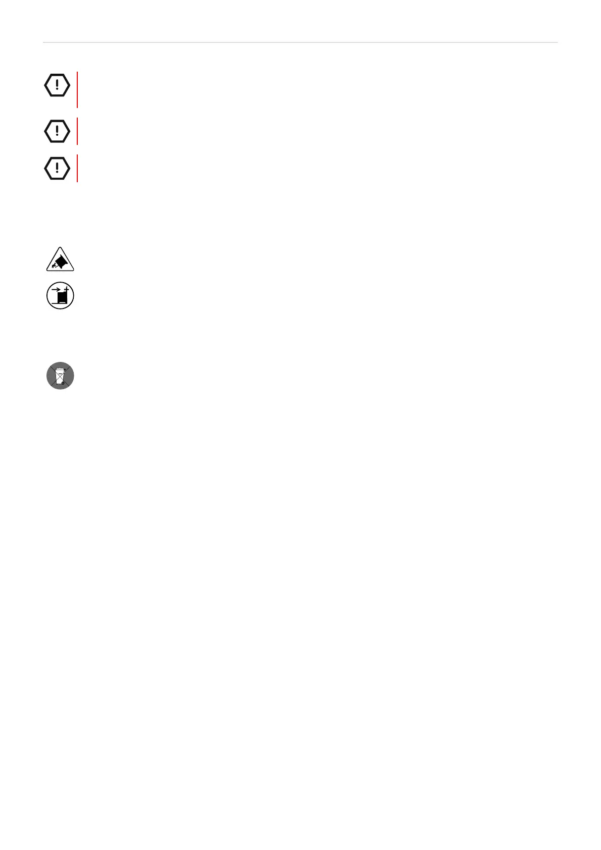 Warning! Stabilising means must be installed to prevent tipping.