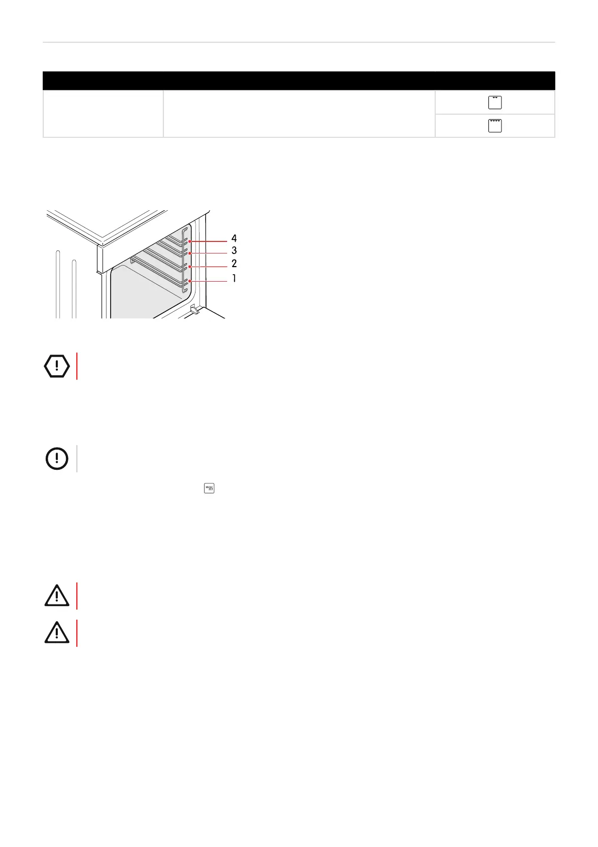 • Make sure there is enough liquid in the tray when using a baking tray. Otherwise the food may burn.
