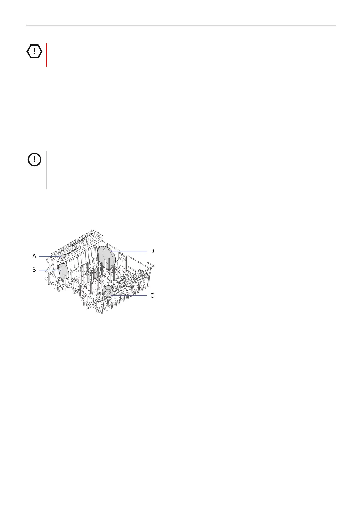 • Dishes and items of cutlery must not lie inside one another, or cover each other.