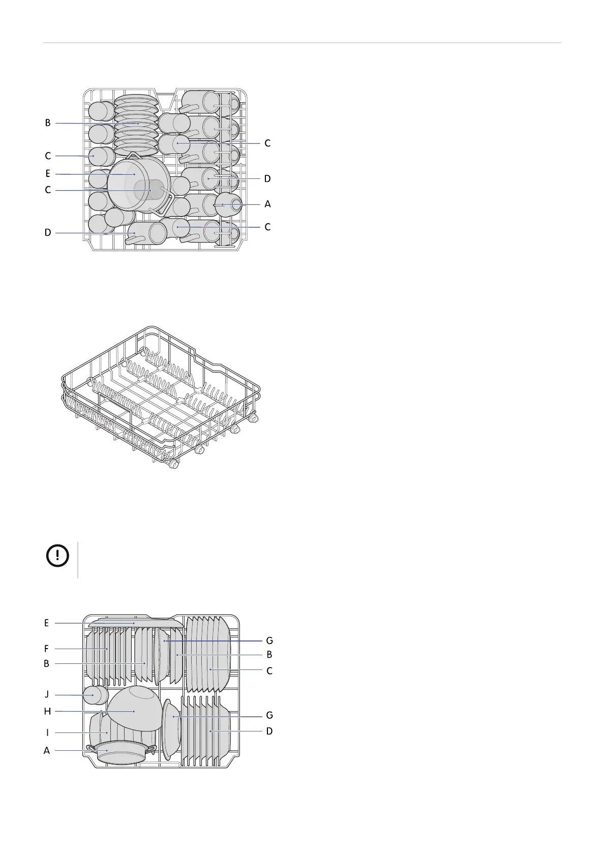 • Fyll med större föremål och sådant som är svårt att rengöra som kastruller, grytor, lock, serveringsfat och skålar.