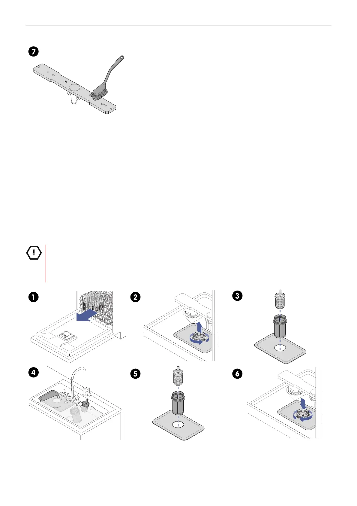 • Never use the dishwasher without the filters in place. Incorrect replacement of the filters may reduce the