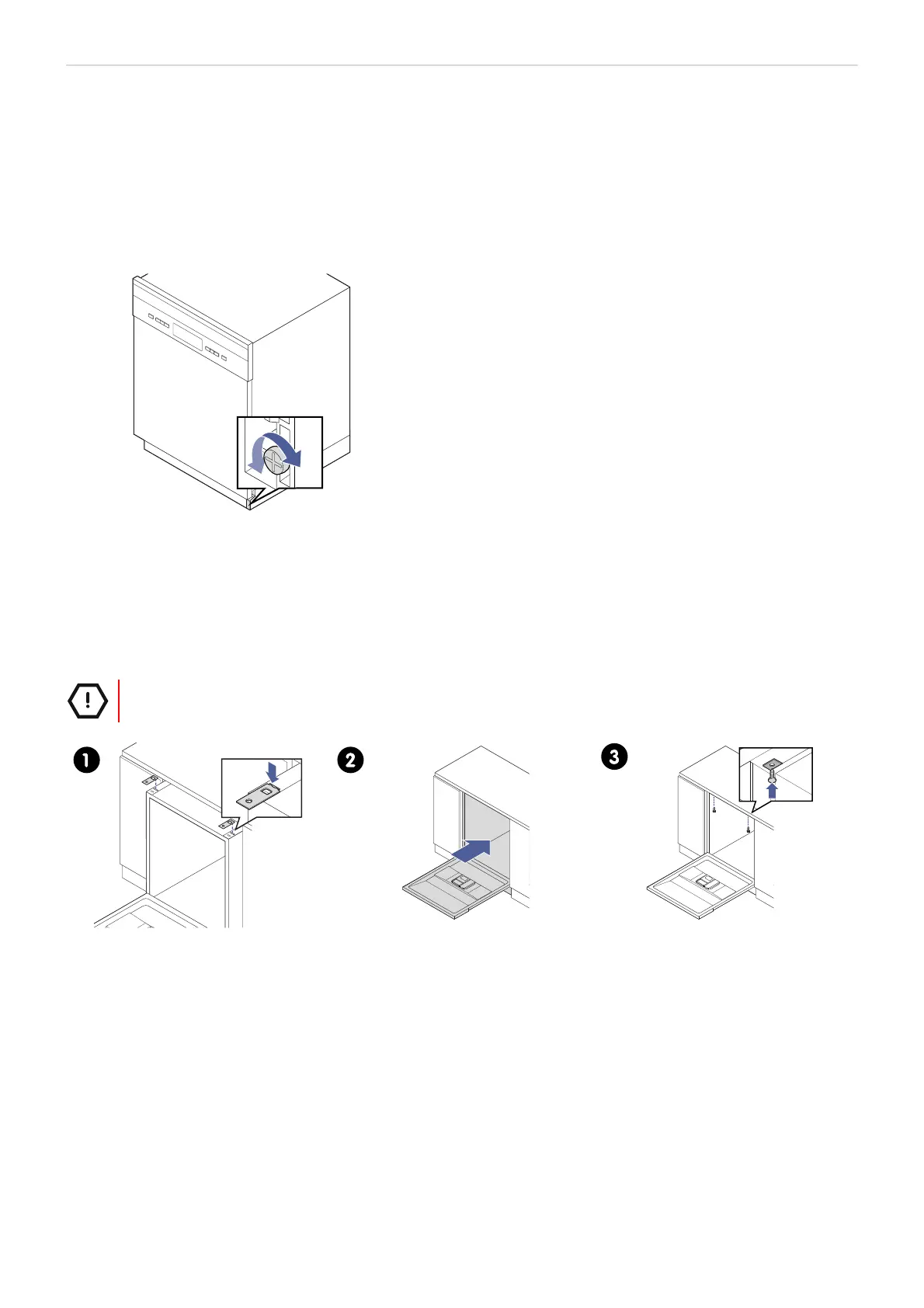 2. Skub opvaskemaskinen ind, så den står korrekt i elementet.