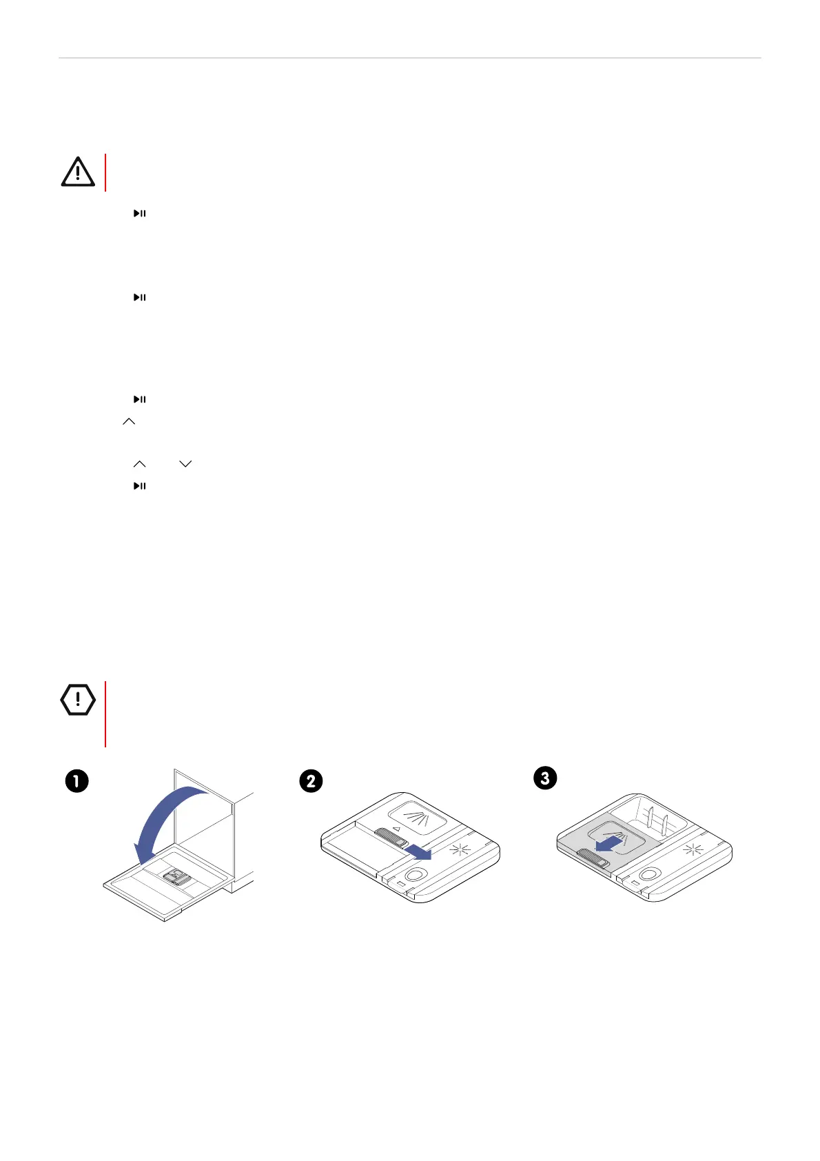Det är farligt att öppna luckan under pågående program (du kan bränna dig på varm vattenånga).
