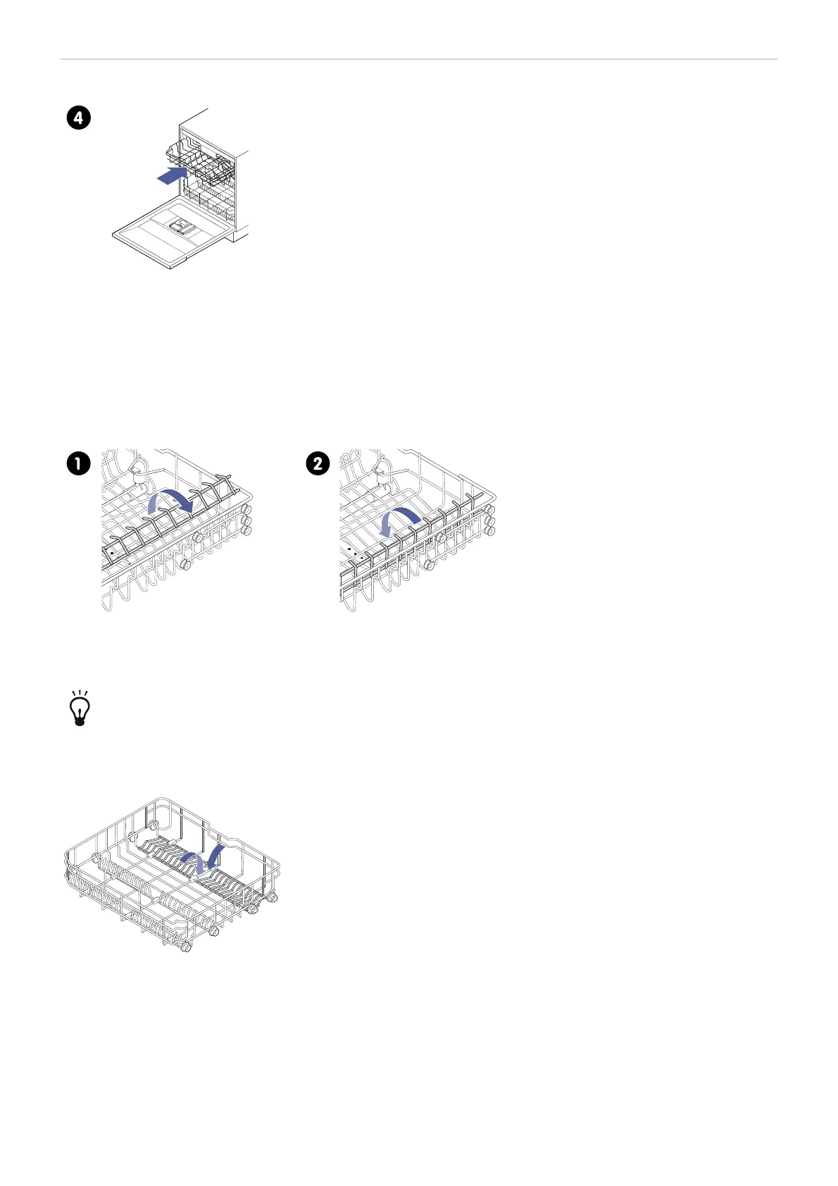 Du kan fälla upp tallrikshyllorna i den nedre korgen för att få plats med större föremål.