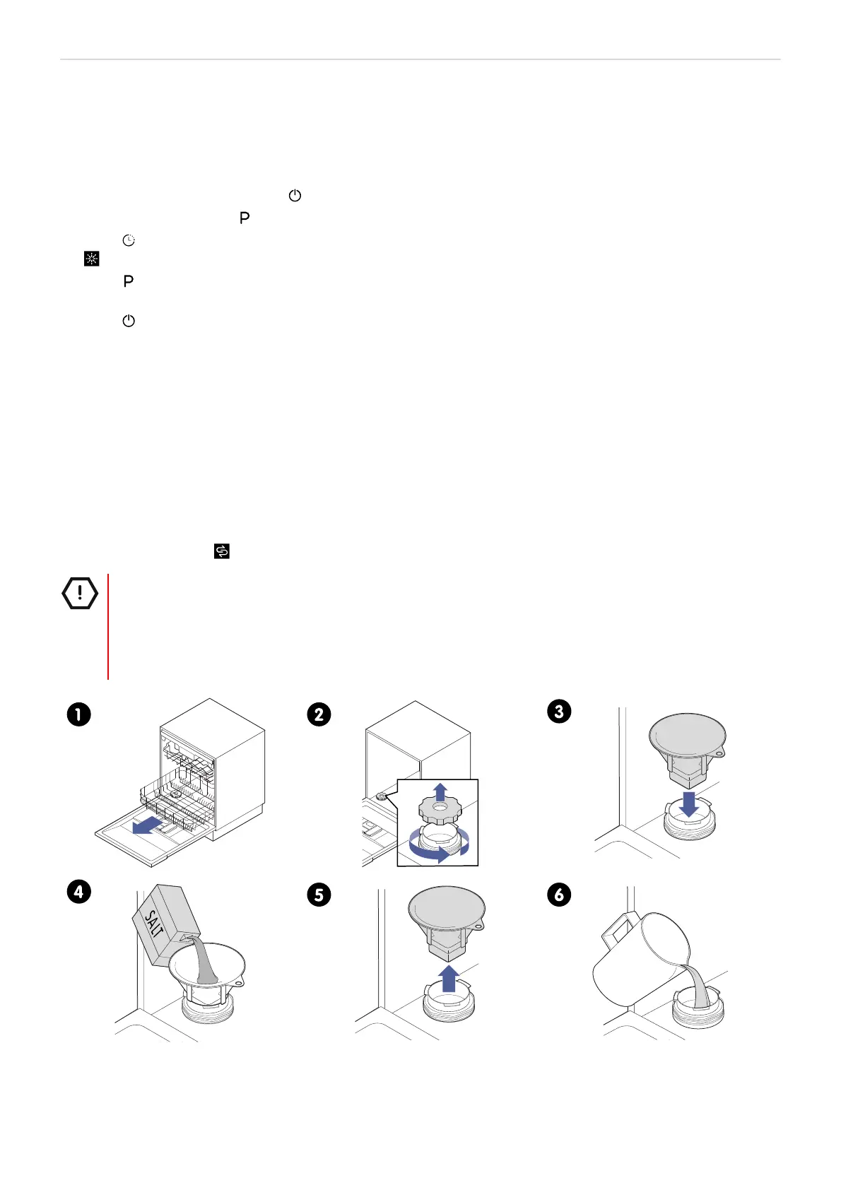 • Täytä suolalla vasta juuri ennen syklin käyttämistä. Koneen pohjalle läikkynyt ja joksikin aikaa jäänyt
