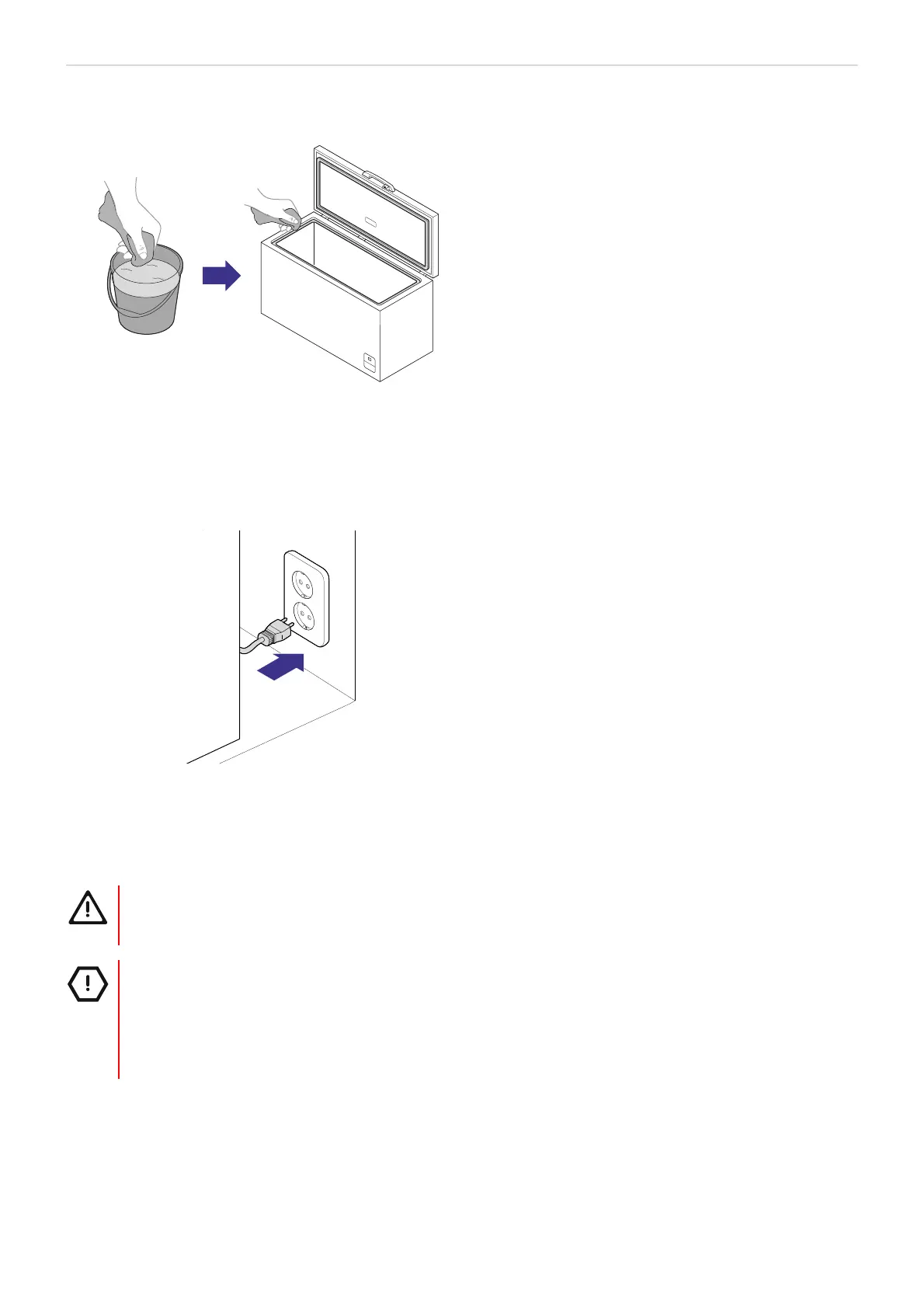 • Do not plug the chest freezer back into the power socket unless the interior is completely dry.