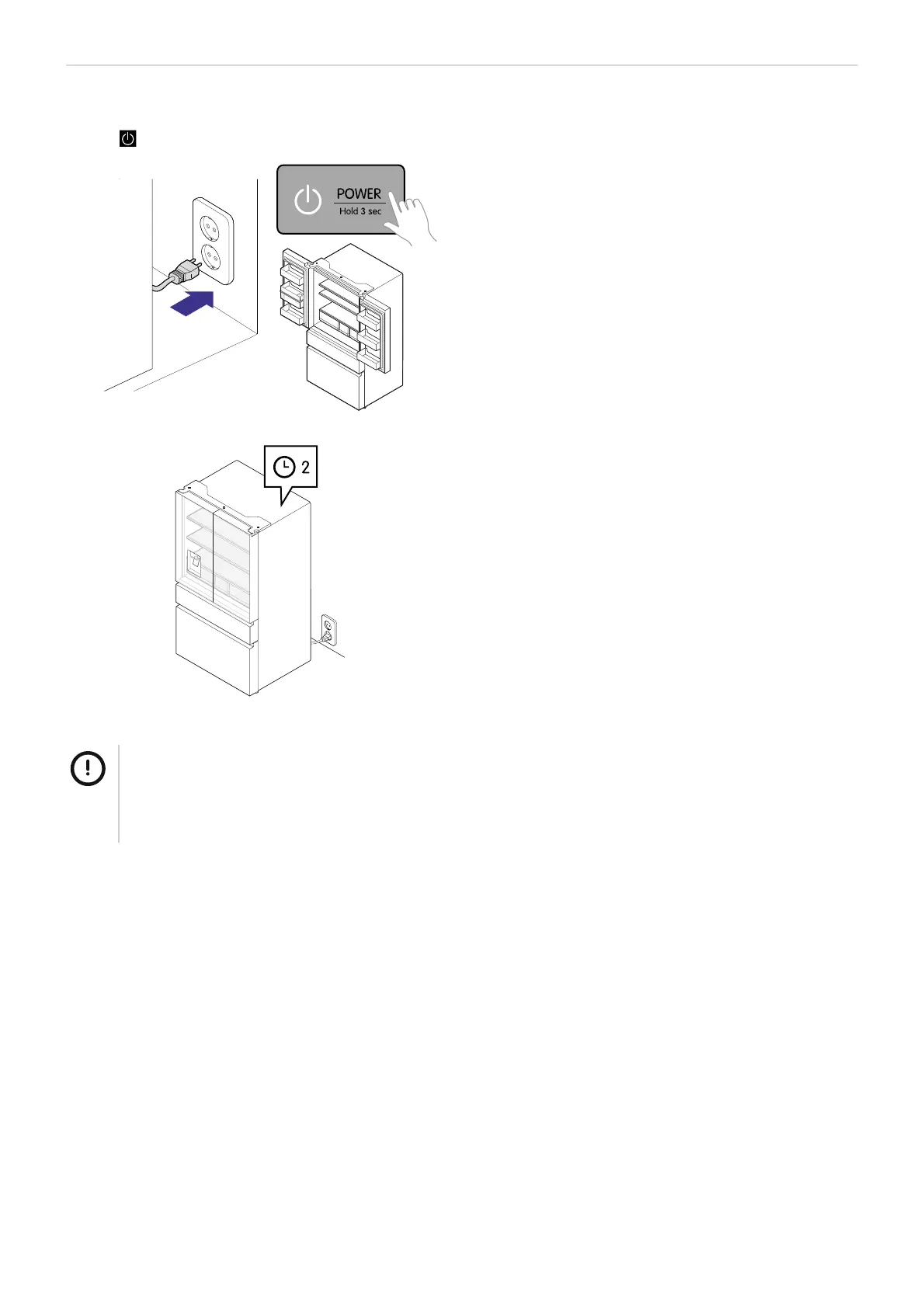 4. Plug in the fridge freezer and then touch and hold Power for 3 seconds to turn it on.