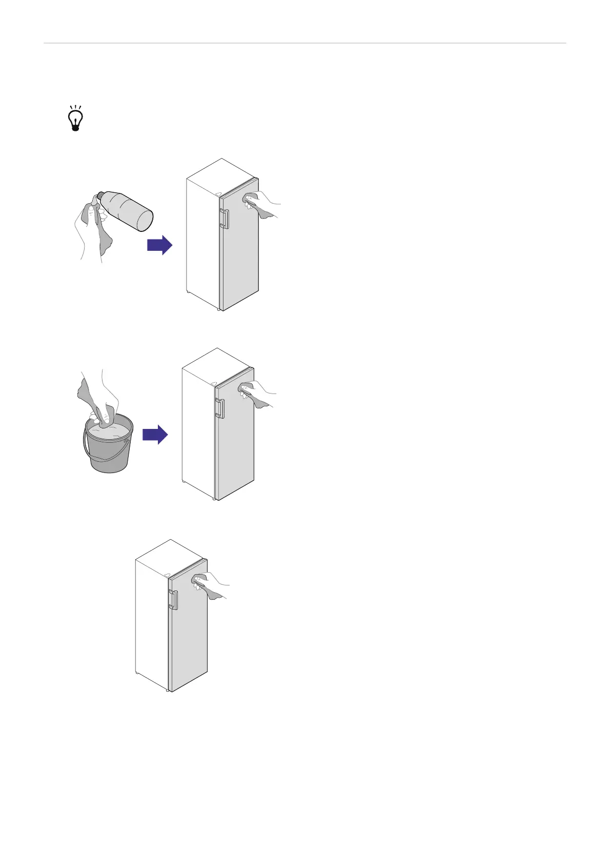 3. Reinigen Sie die Tür, die Türgriffe und die Schrankoberflächen mit einem weichen Tuch, das beispielsweise mit einem