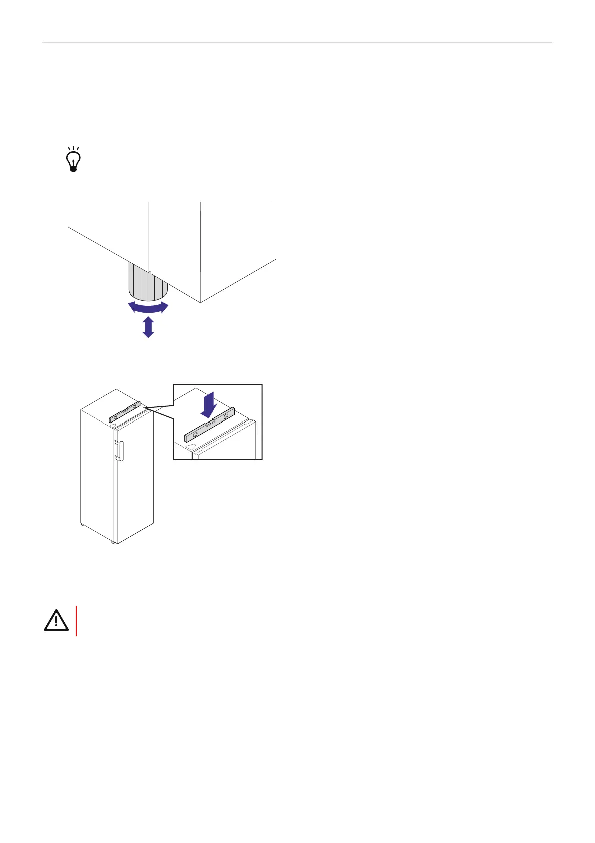 • Drehen Sie die Füße gegen den Uhrzeigersinn, um den Gefrierschrank abzusenken.