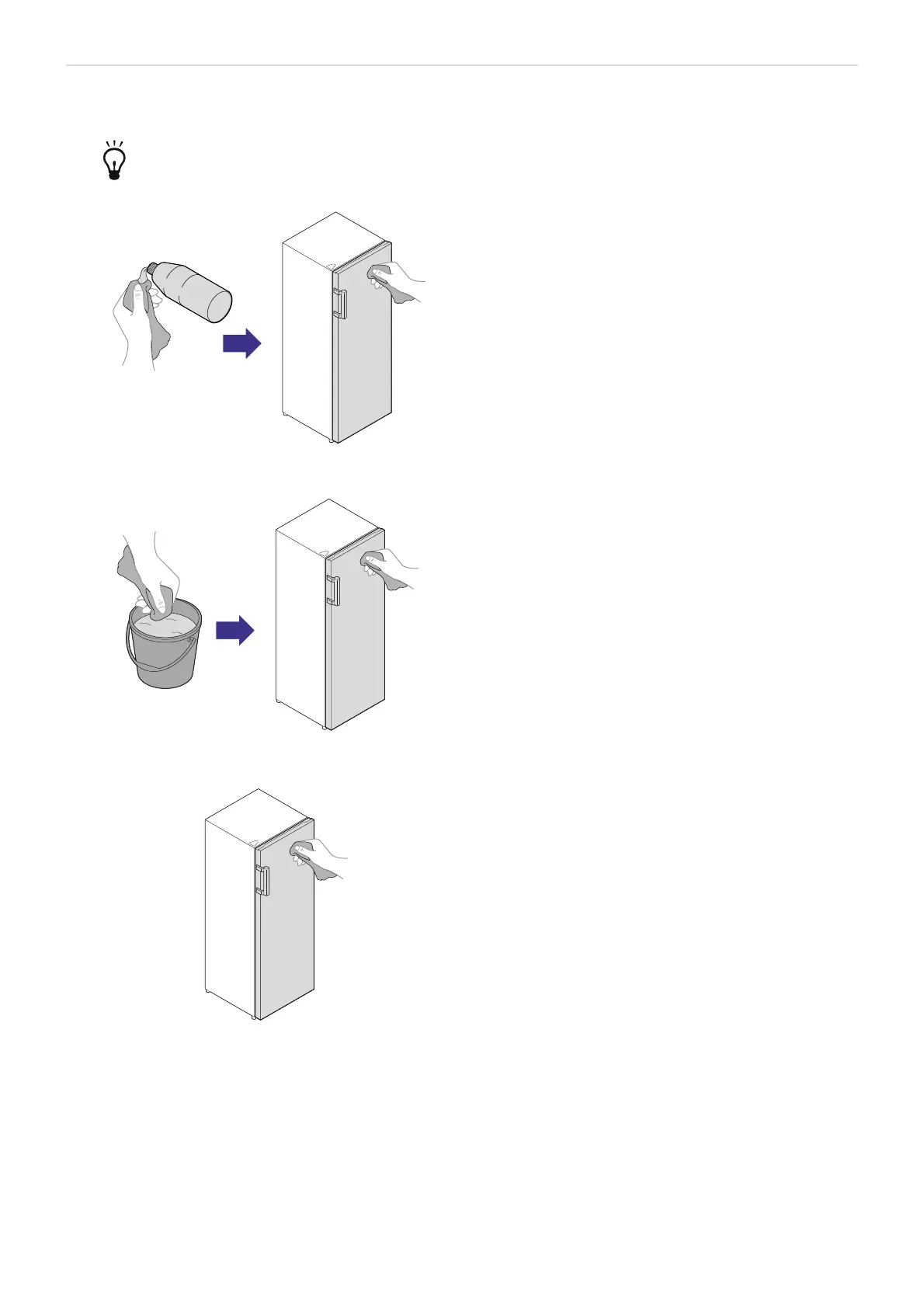 3. Clean the door, handles and cabinet surfaces with a soft cloth dampened with, for example, mild detergent.
