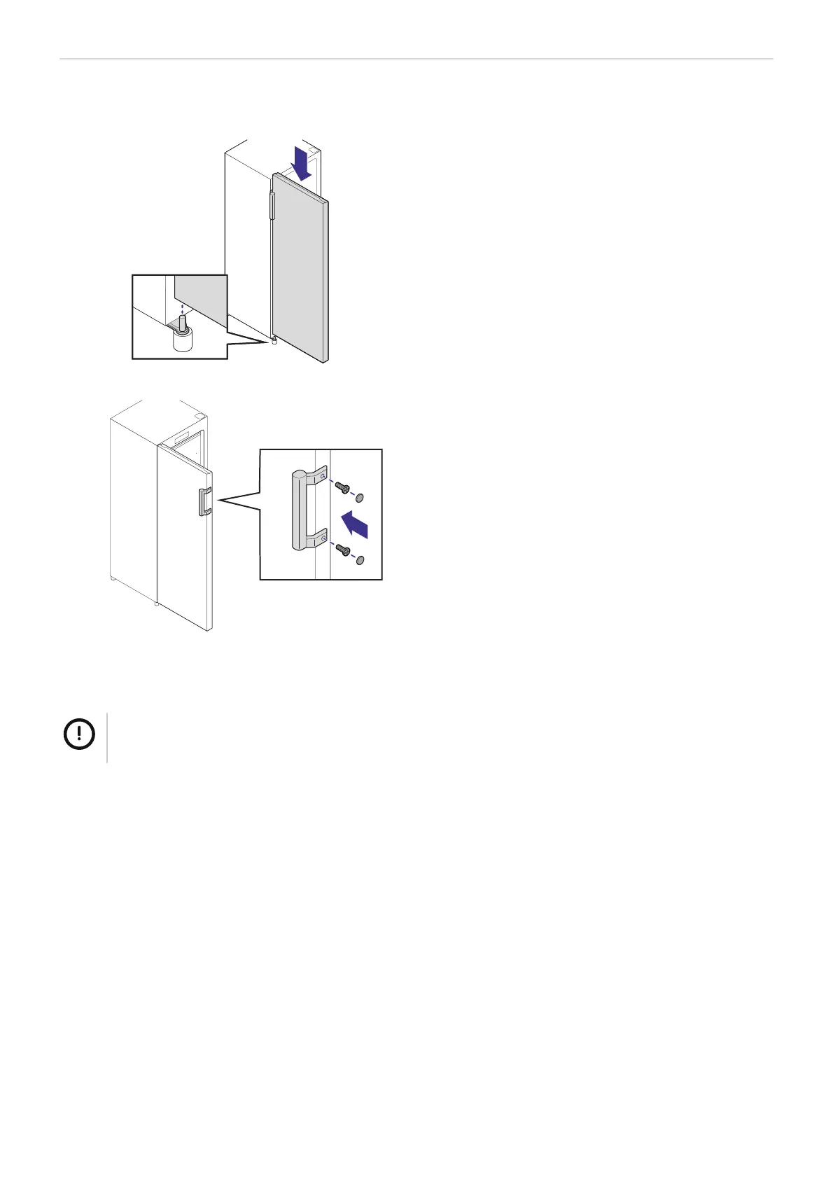 OBS! Det nedre och övre gångjärnet måste vändas 180° när dörren monteras på motsatt sida.
