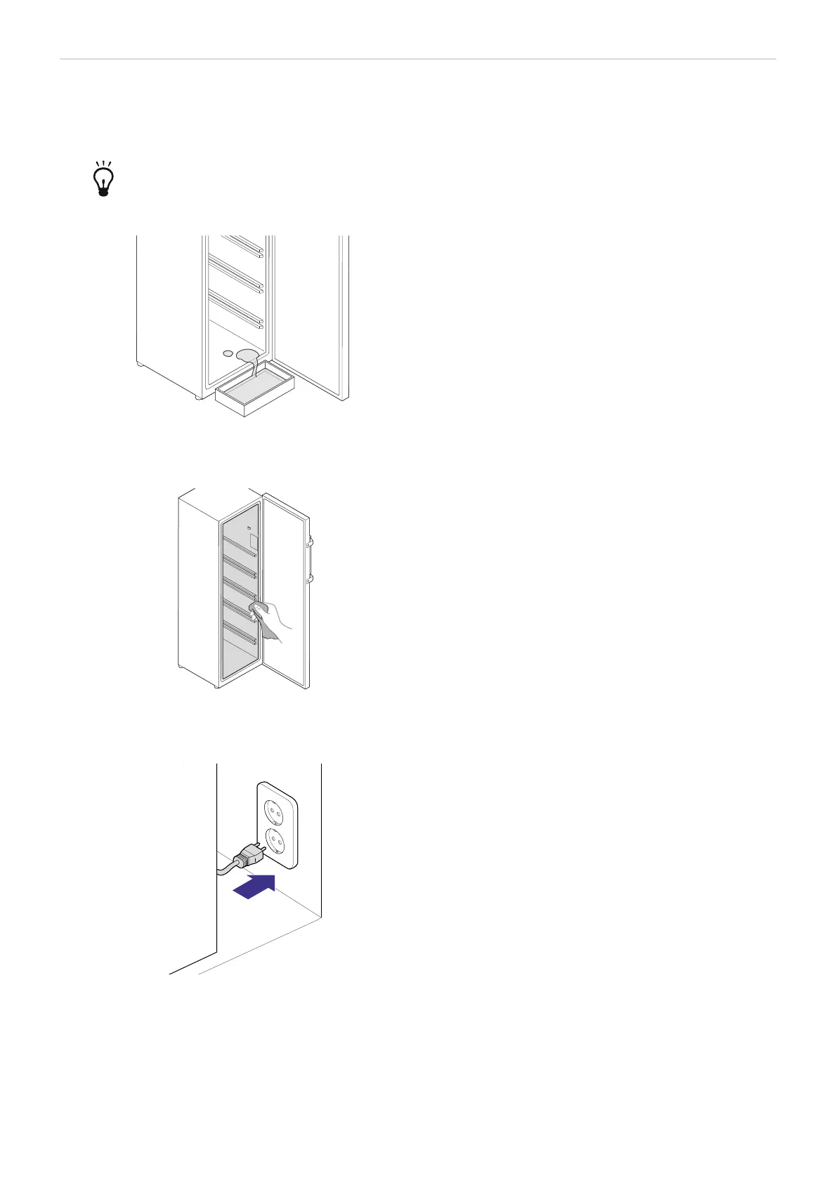 ADVARSEL! Tilslut ikke fryserens stik til strømkontakten, før fryseren er helt tør indeni.