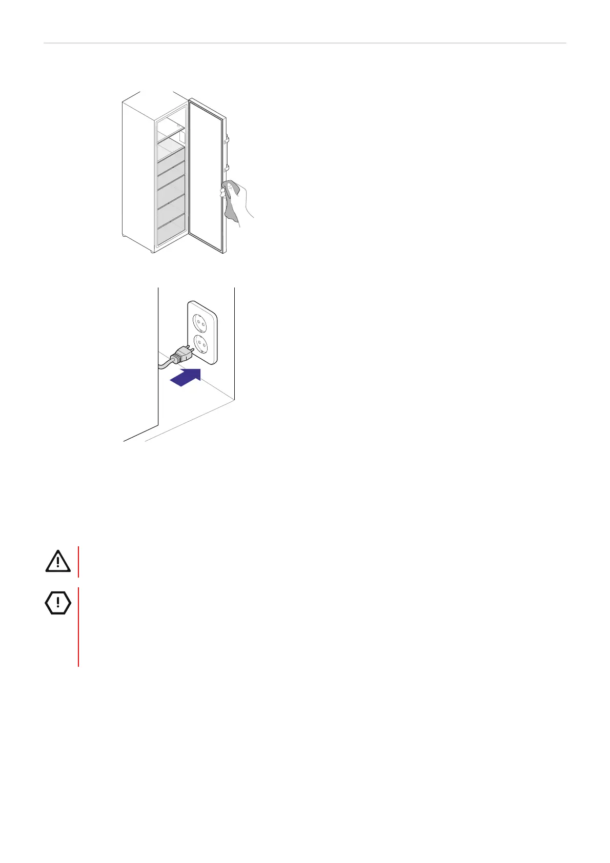 Koble fra fryseren før den avrimes. Det vil være risiko for elektrisk støt.
