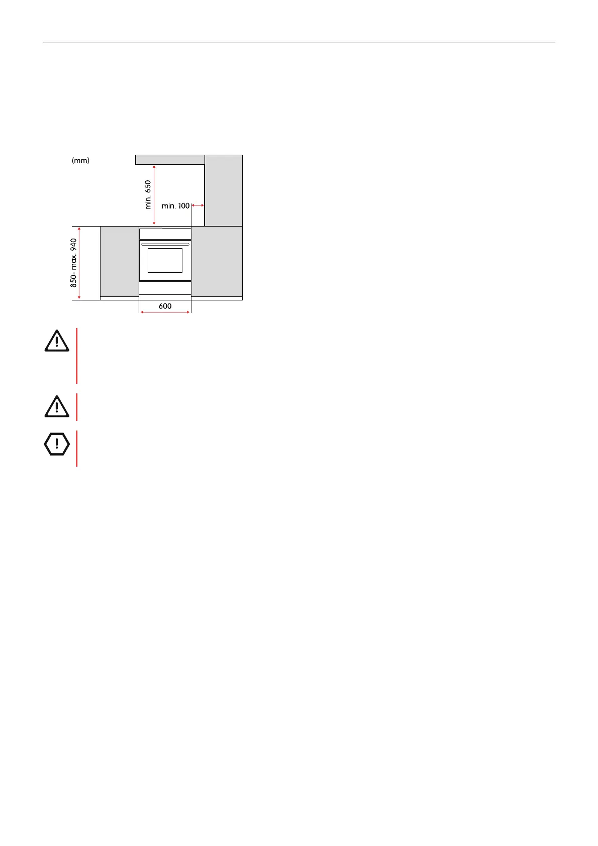 Make sure to place the oven considering the measurements and other factors described in this section.