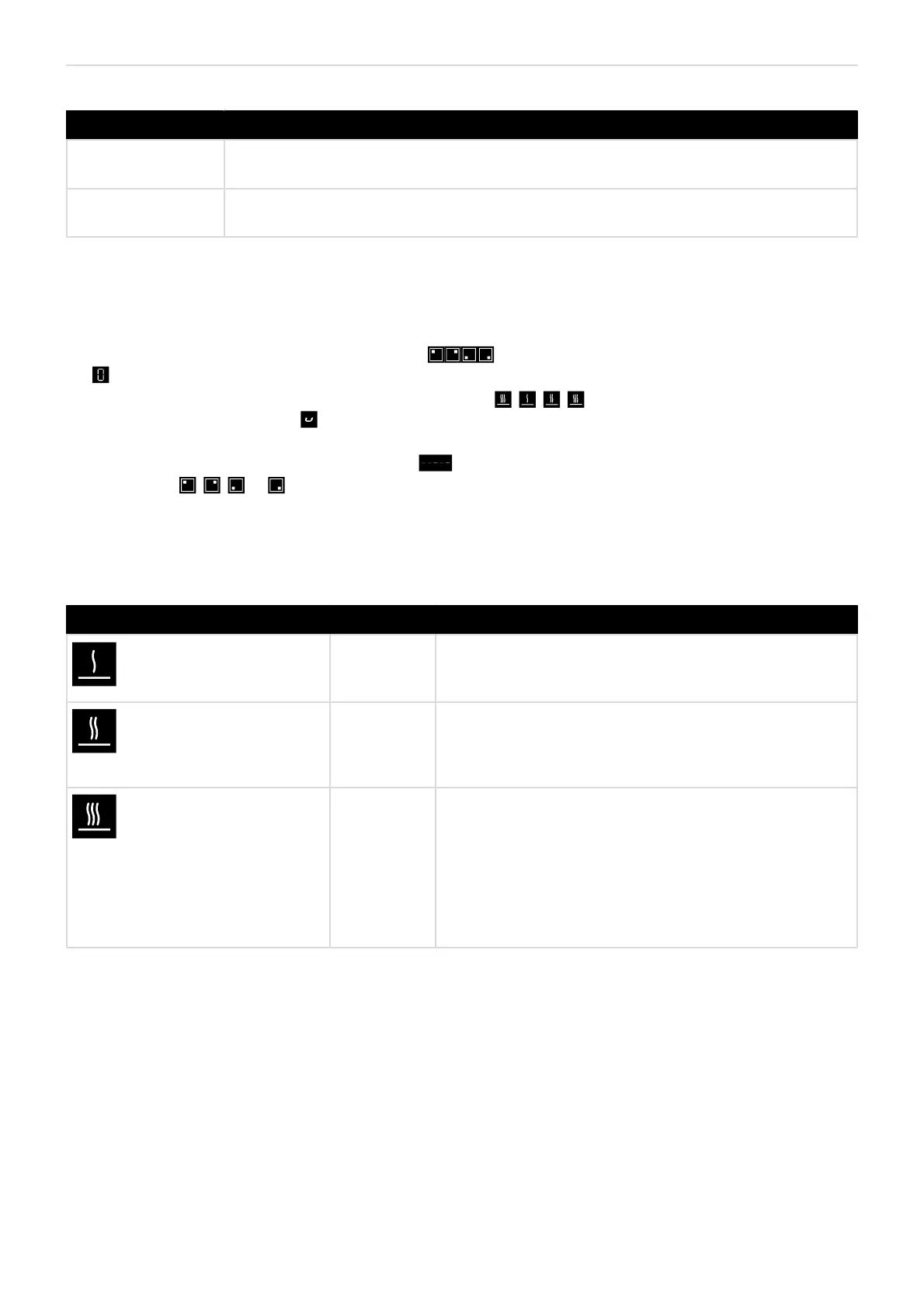Selaa käytettävissä olevien lämpötilatilojen läpi koskettamalla : , , .