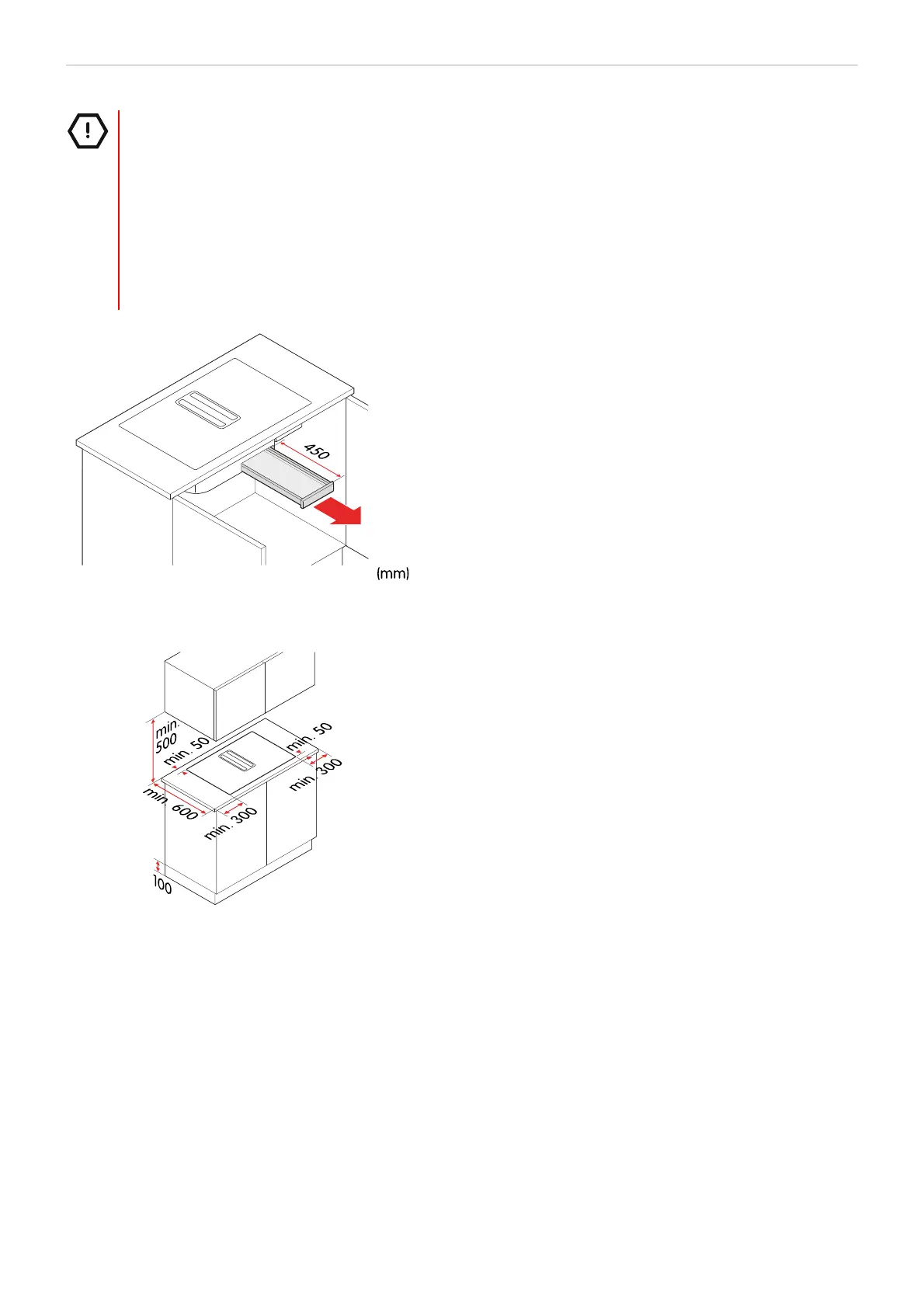 • Jätä 450 mm tilaa vesisäiliön irrotusta varten.