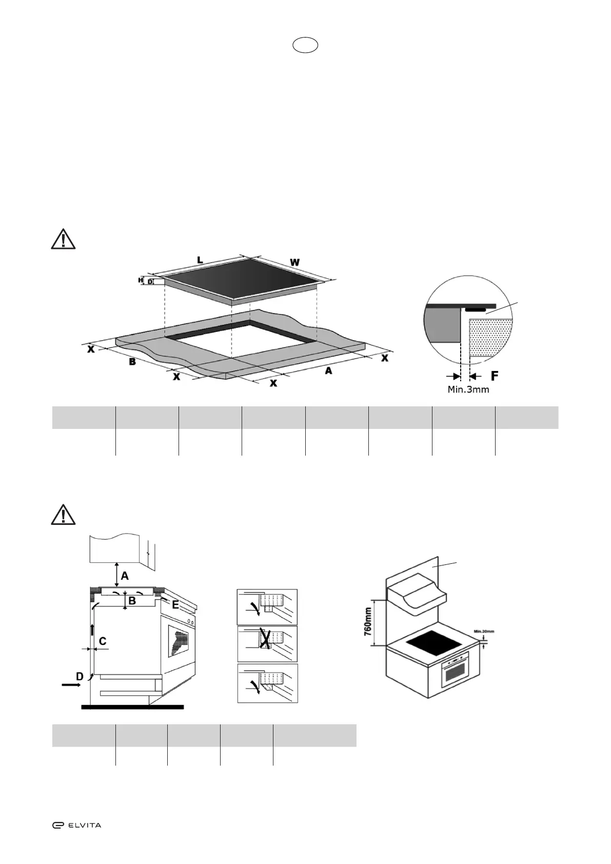 NB: Sikkerhetsavstanden mellom induksjonstoppen og et eventuelt skap over induksjonstoppen skal være minst