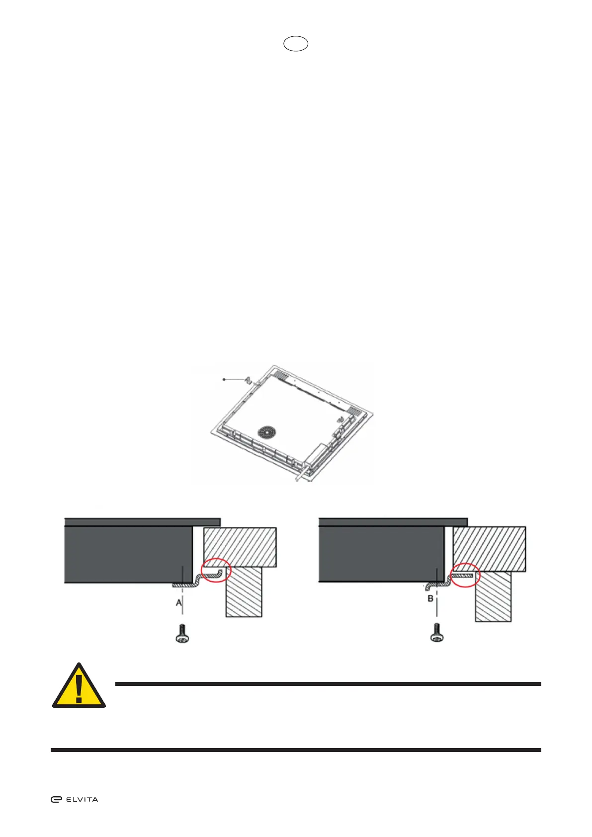 Fest induksjonstoppen til benkeplaten ved å skru 2 beslag på undersiden av induksjonstoppen (se bilde) etter installering.