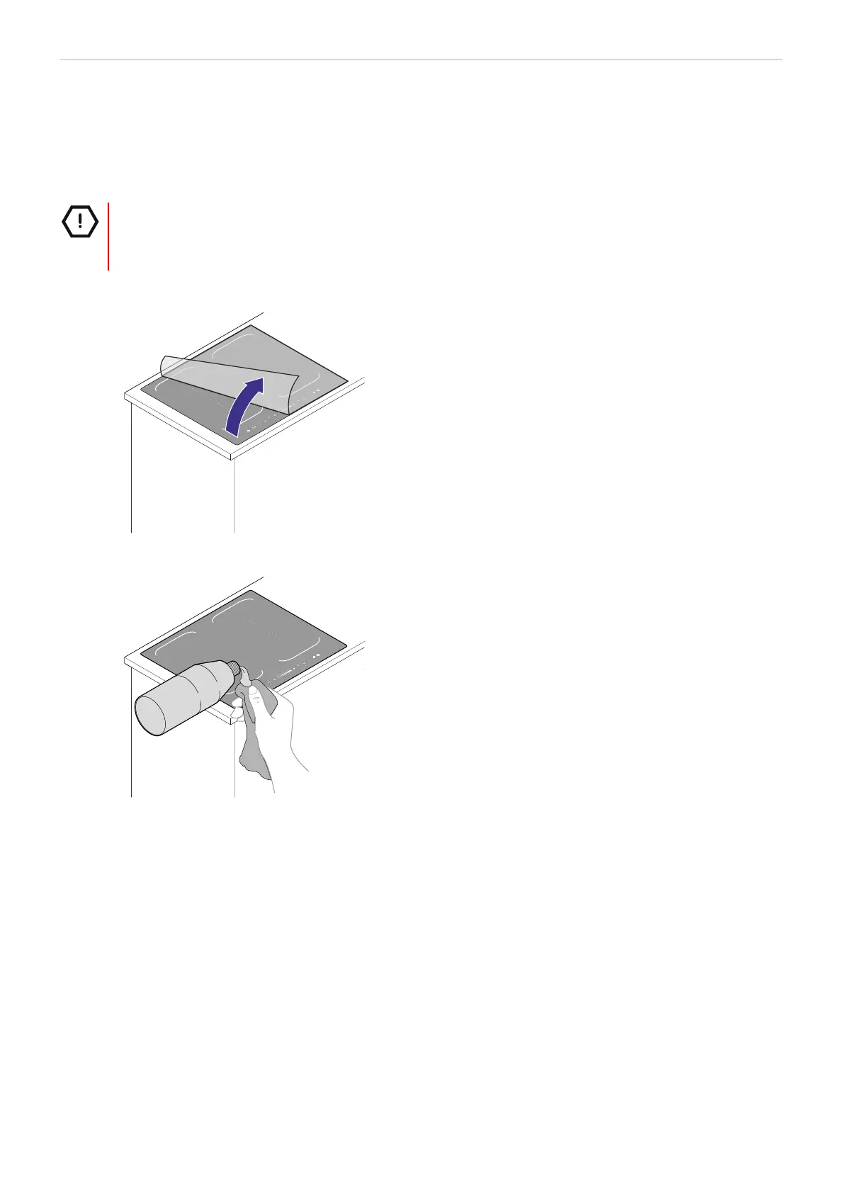 1. Entfernen Sie alle Transportverpackungen vom Kochfeld.