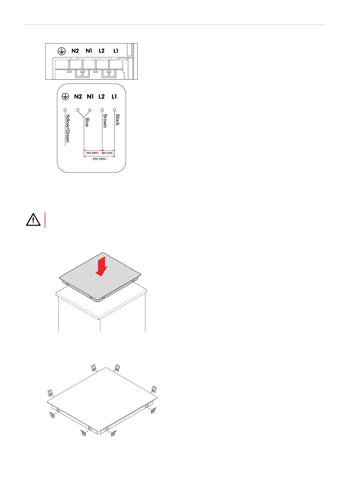 The brackets cannot touch the inner surfaces of the hob after installation.