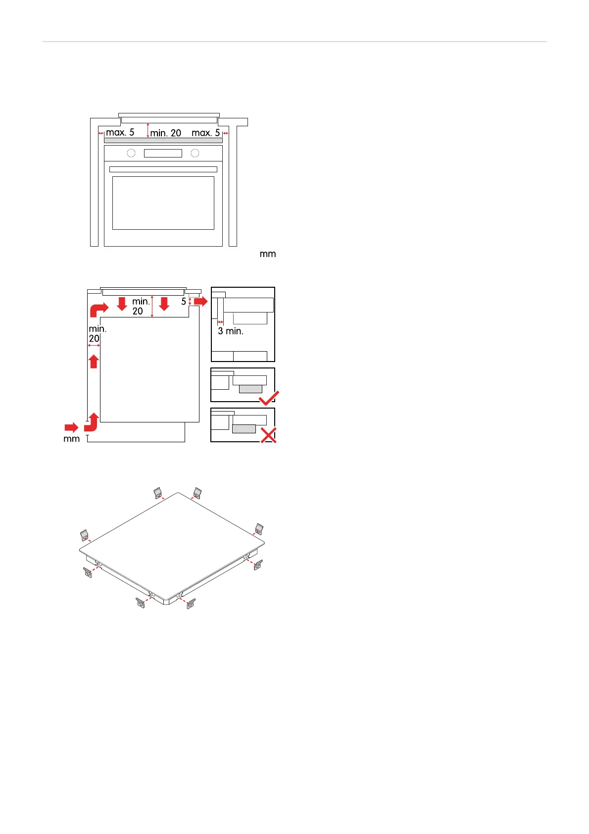 2. Install a wooden insert, fixed by screws, to prevent accidental contact with the hot bottom of the hob and to avoid