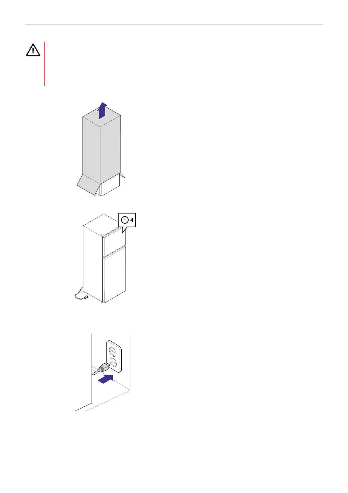 2. Leave the fridge freezer to stand for at least 4hours before plugging it in.