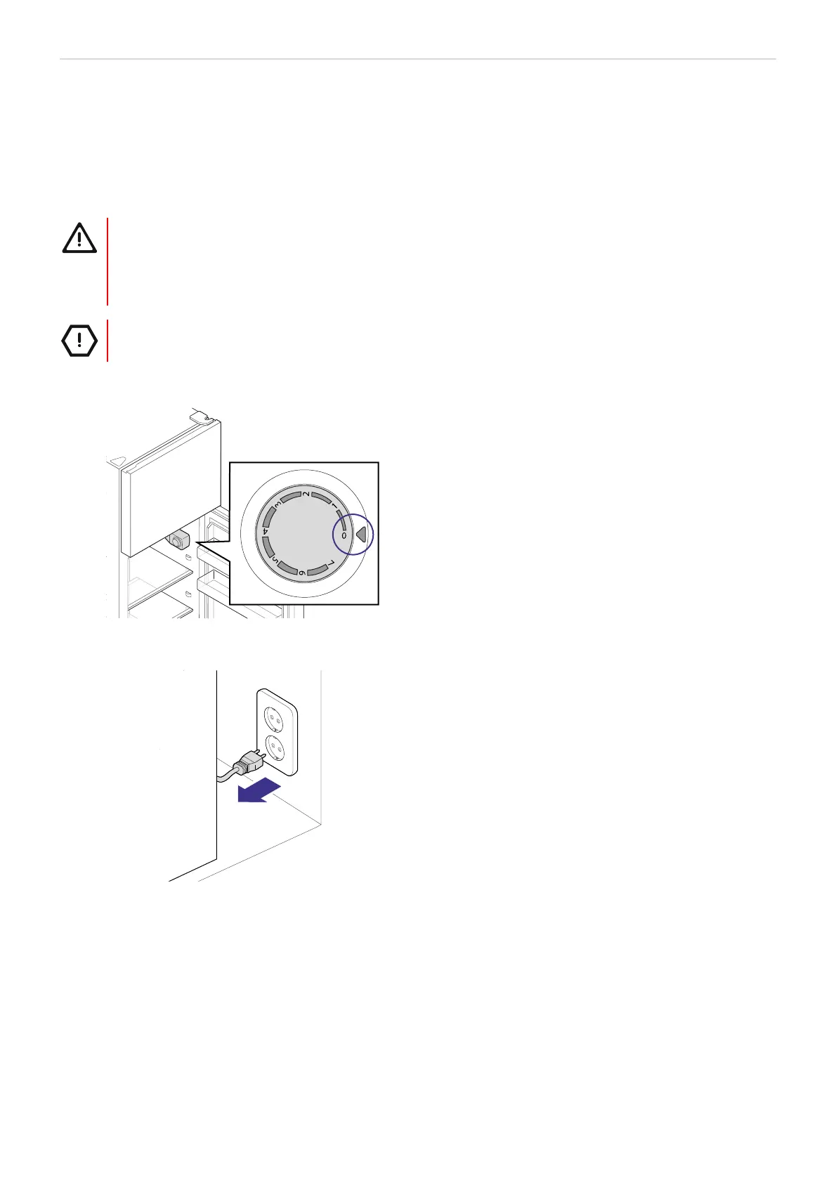 • Unplug the fridge freezer before cleaning. There is a risk of electric shock.