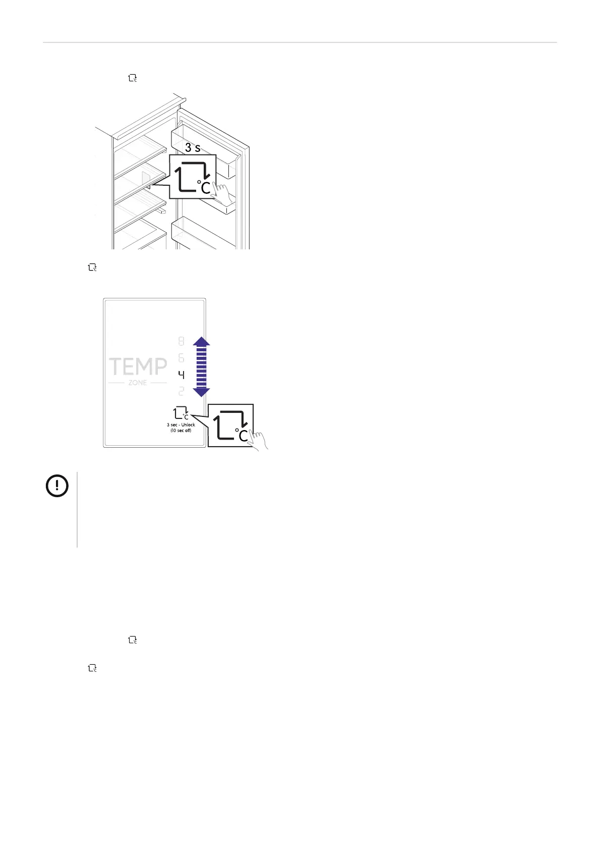Touch to cycle through the available temperatures: 2°C, 4°C, 6°C and 8°C.