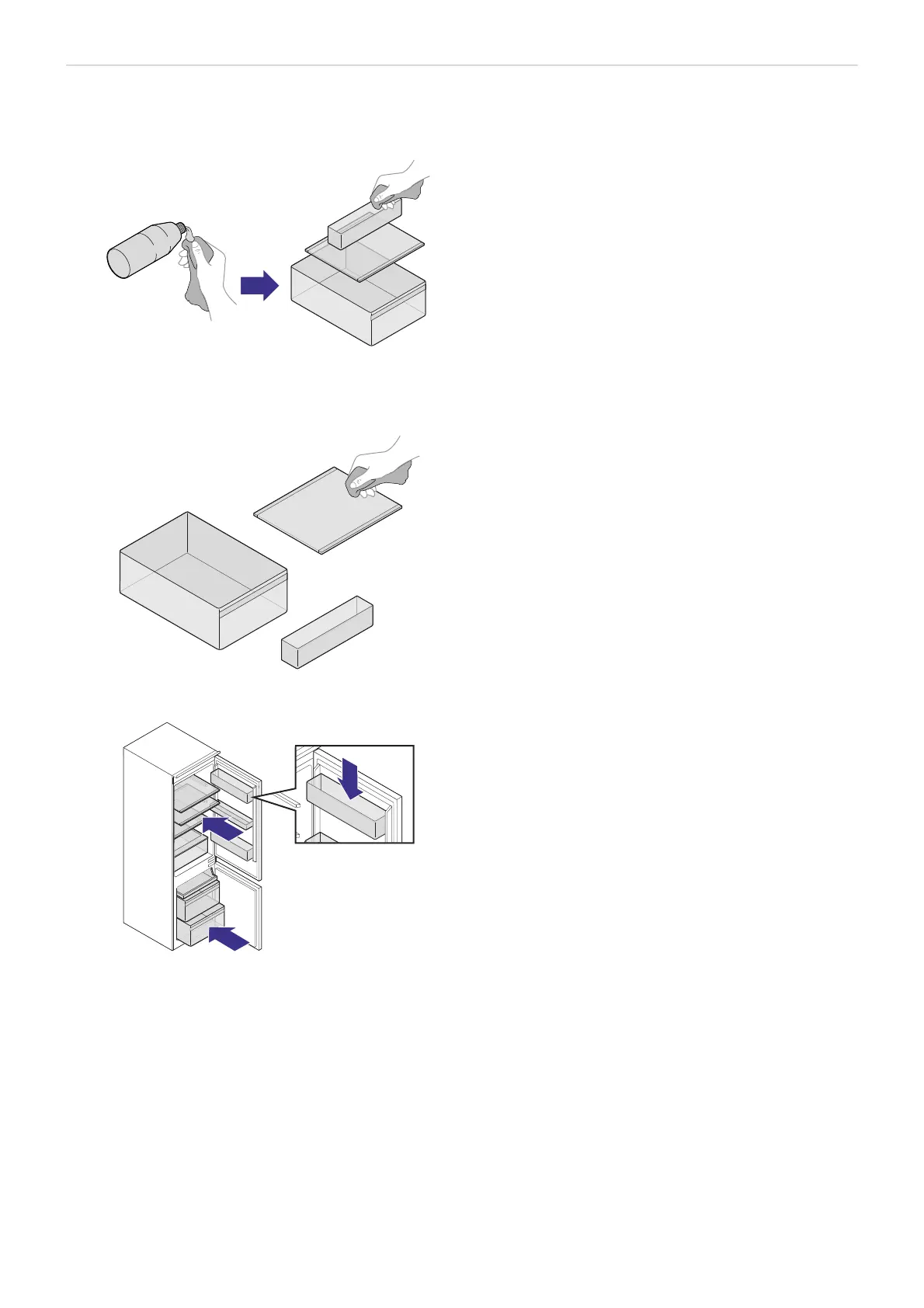 8. Clean the shelves and drawers with a soft cloth dampened with soapy water or diluted detergent.
