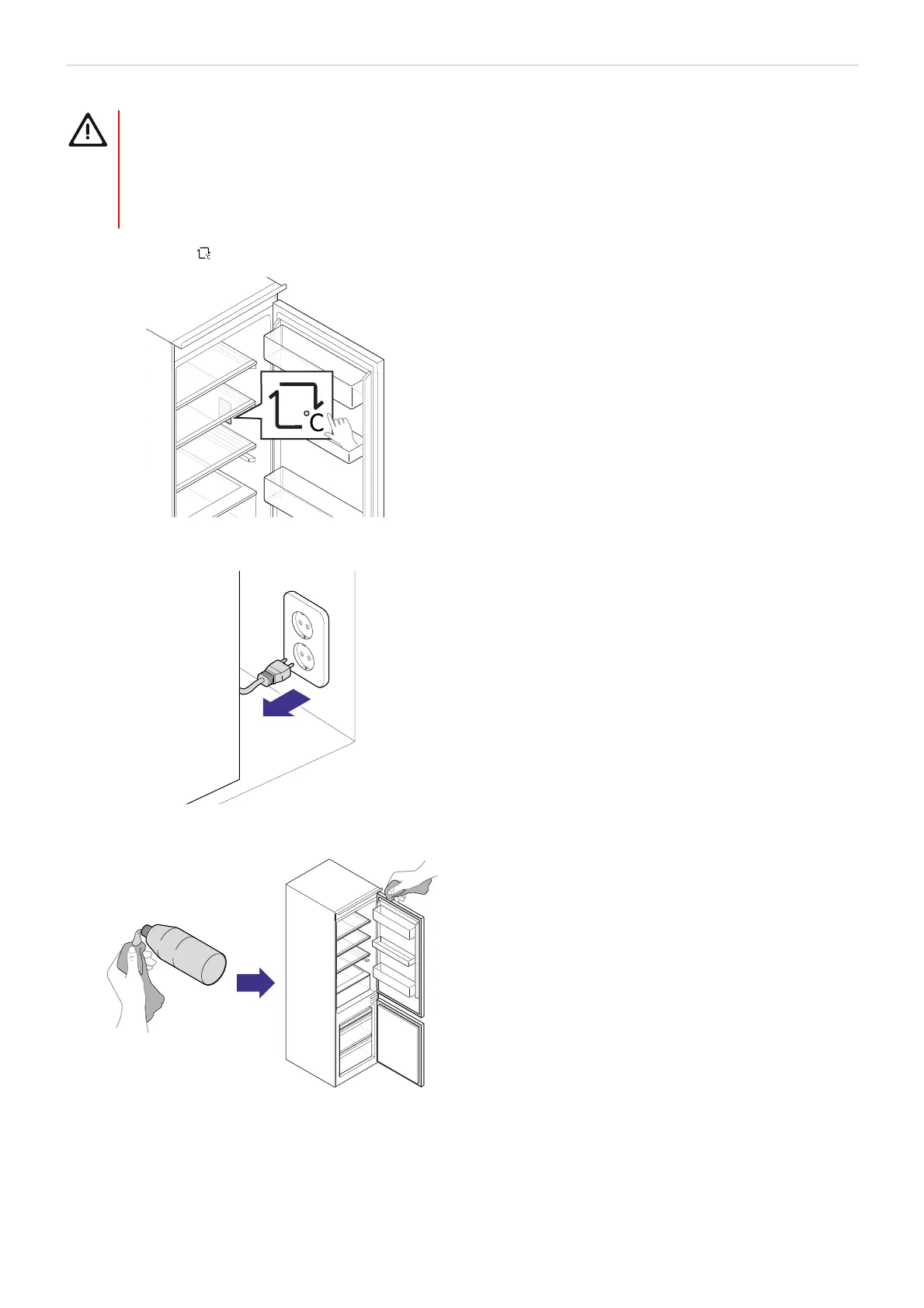 • Unplug the fridge freezer before cleaning. There is a risk of electric shock.