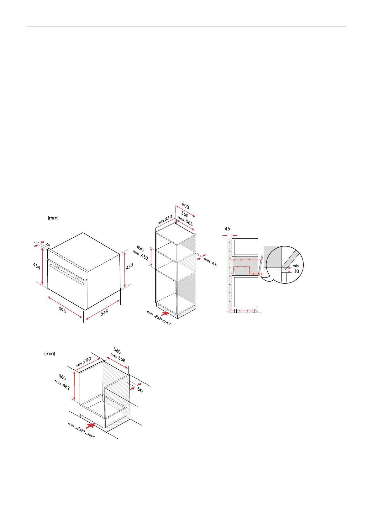 • The fitted cabinet must have a ventilation opening of 250 cm