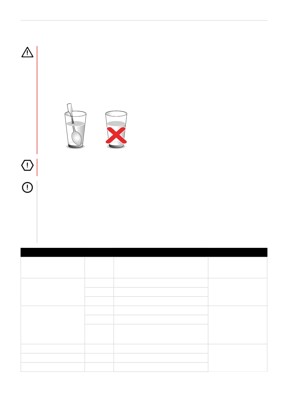 Drinks 150 ml 900 W, 1-2 mins Place a spoon in the glass.