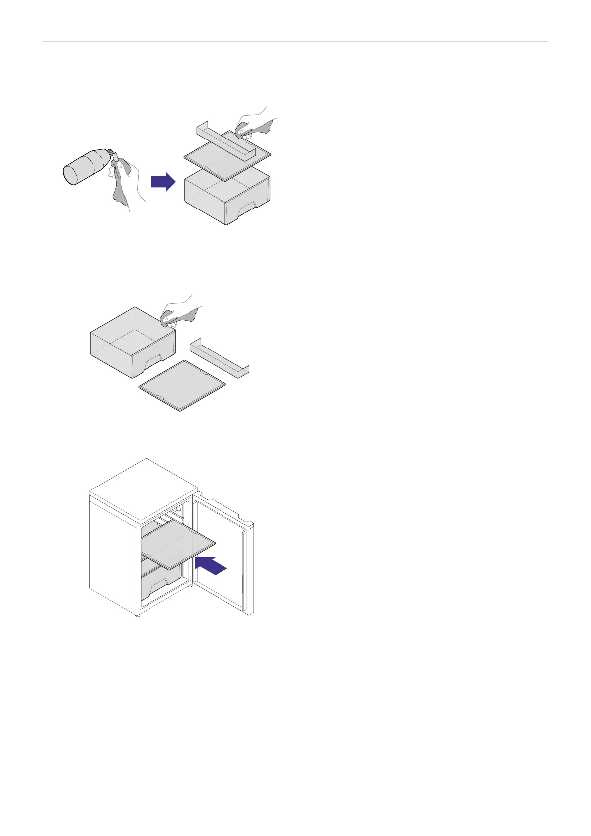 7. Rengör lådor och hyllor med en mjuk trasa fuktad i såpvatten eller utspätt rengöringsmedel.
