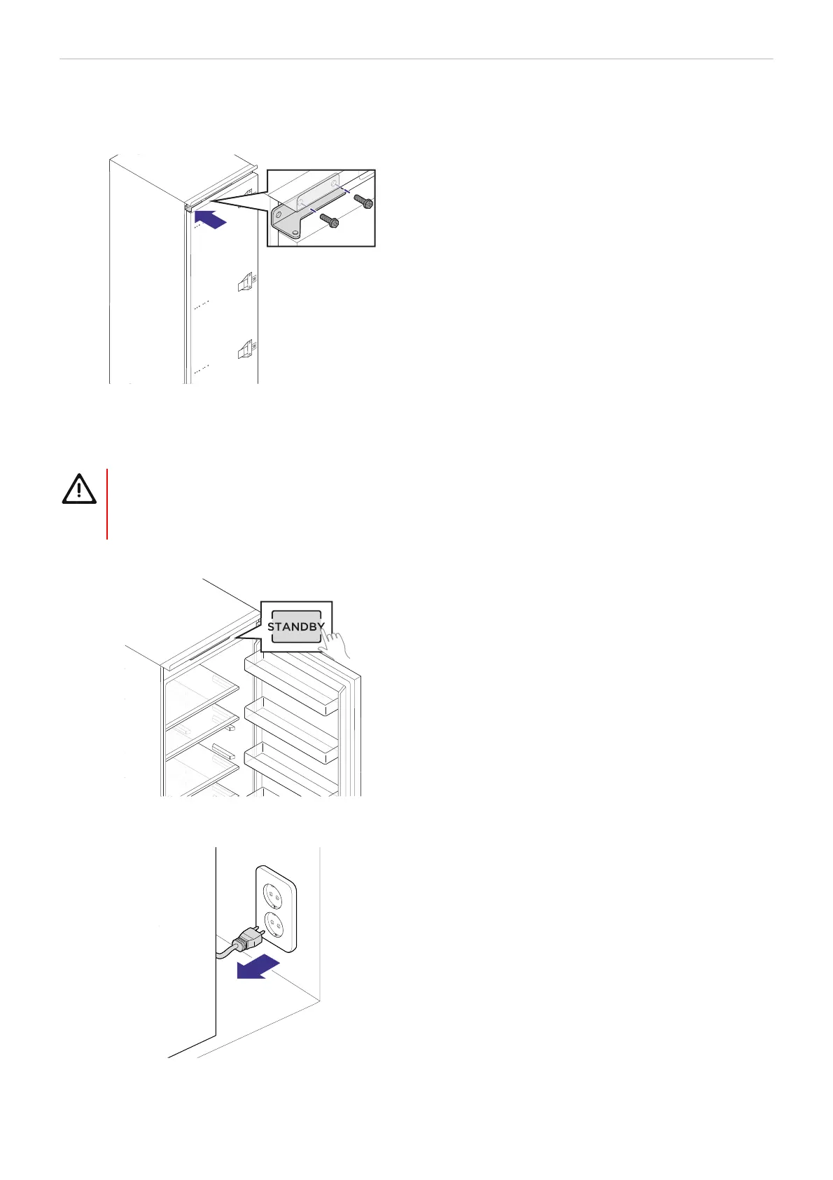 • Schließen Sie das Gerät nicht an die Steckdose an, wenn Sie den Kühlschrank in den Schrank einbauen.