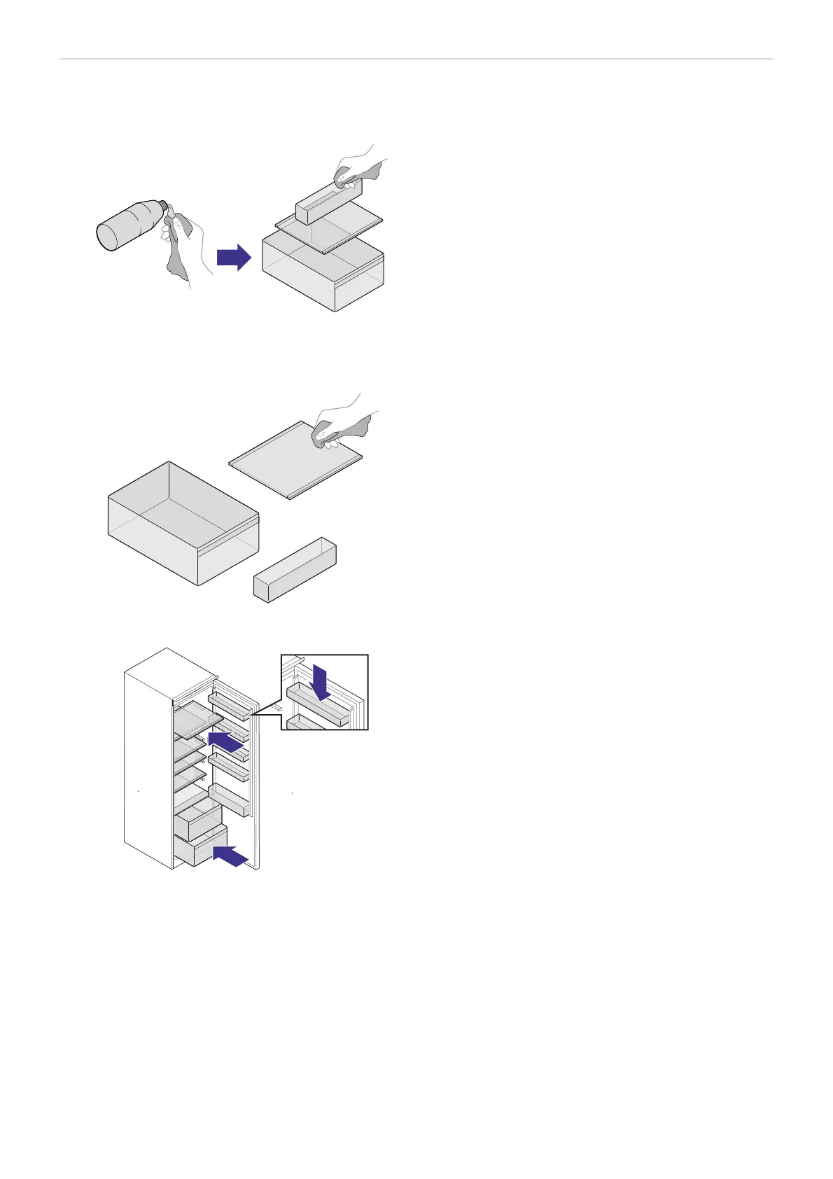 8. Rengør hylderne og skufferne med en blød klud fugtet med sæbevand eller fortyndet rengøringsmiddel.