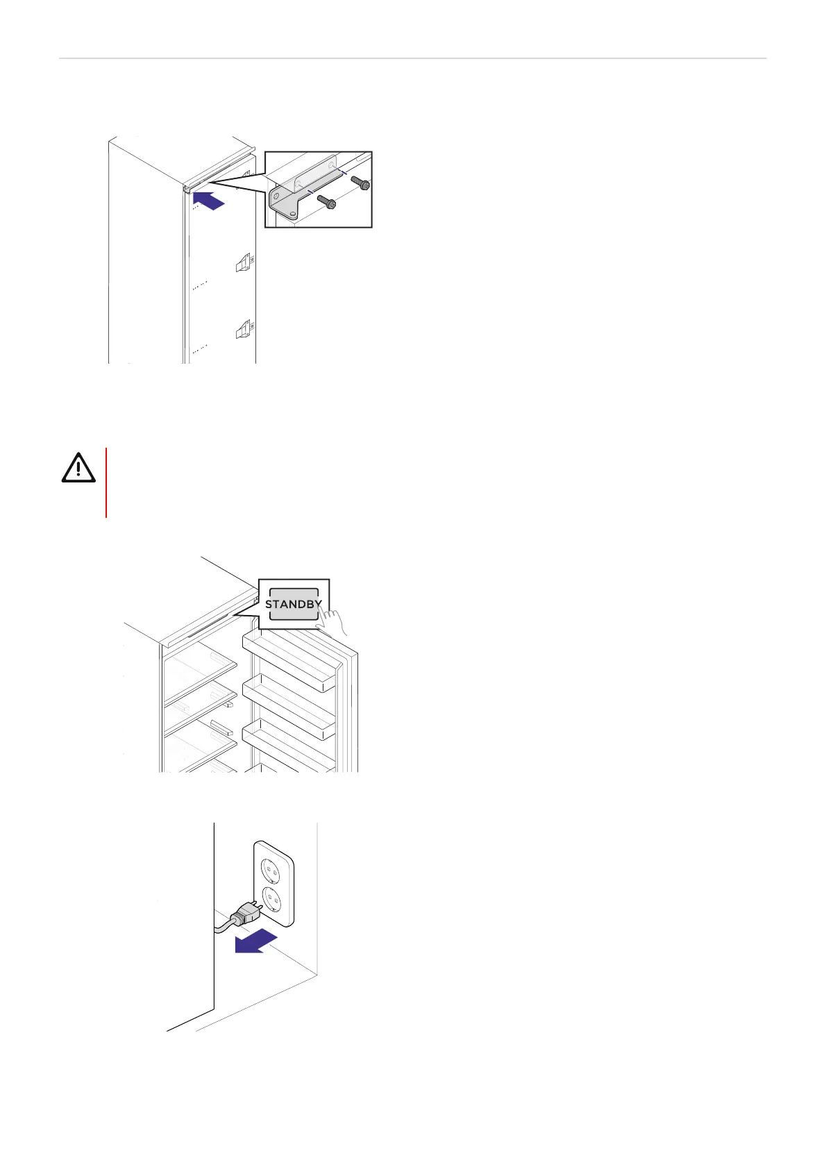 • Produktet må ikke være tilsluttet til stikkontakten, mens køleskabet installeres i kabinettet.