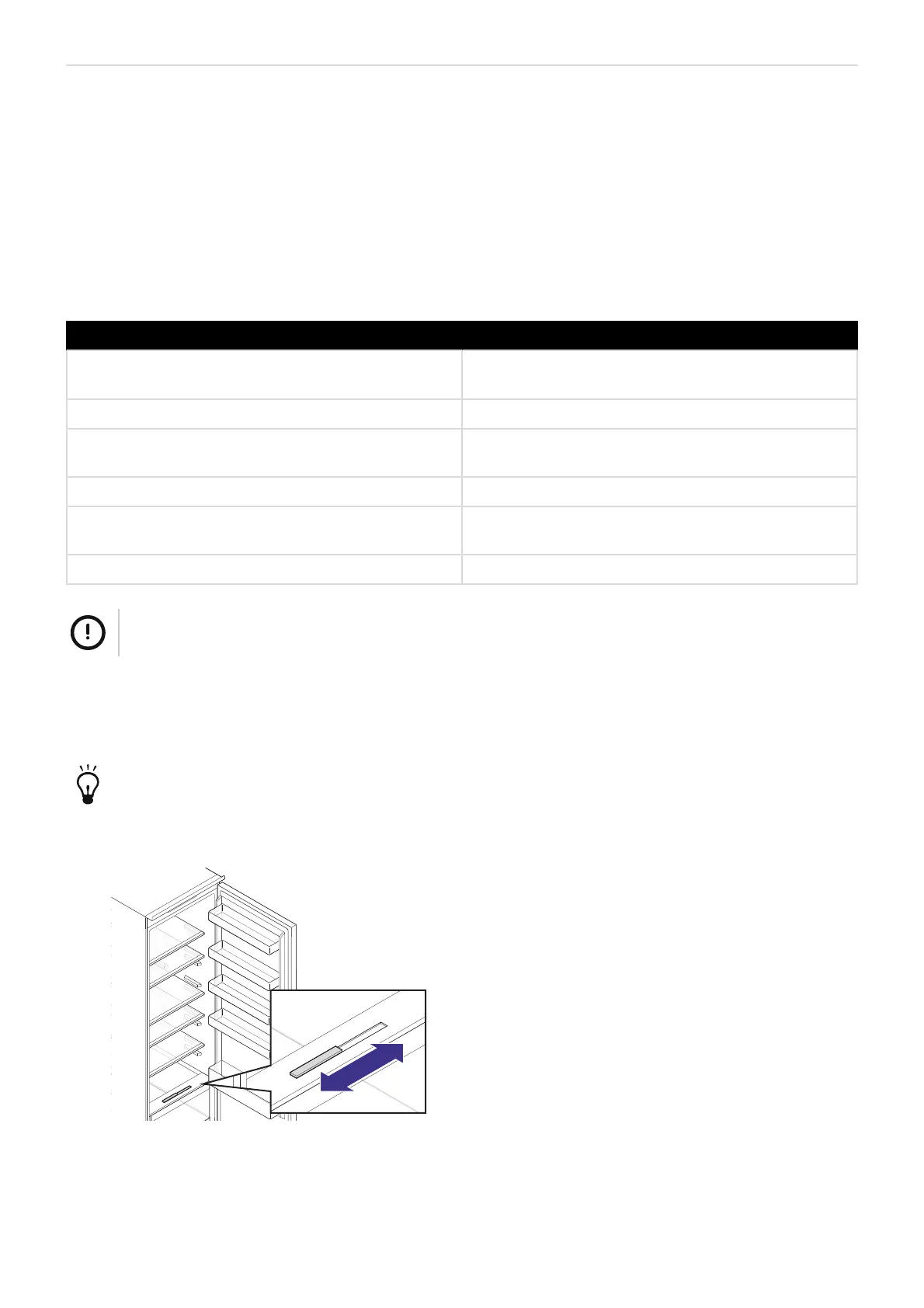 • Matvarer kan oppbevares i flere timer ved strømbrudd. Ikke åpne døren under strømbrudd, og ikke leg inn mer ferske