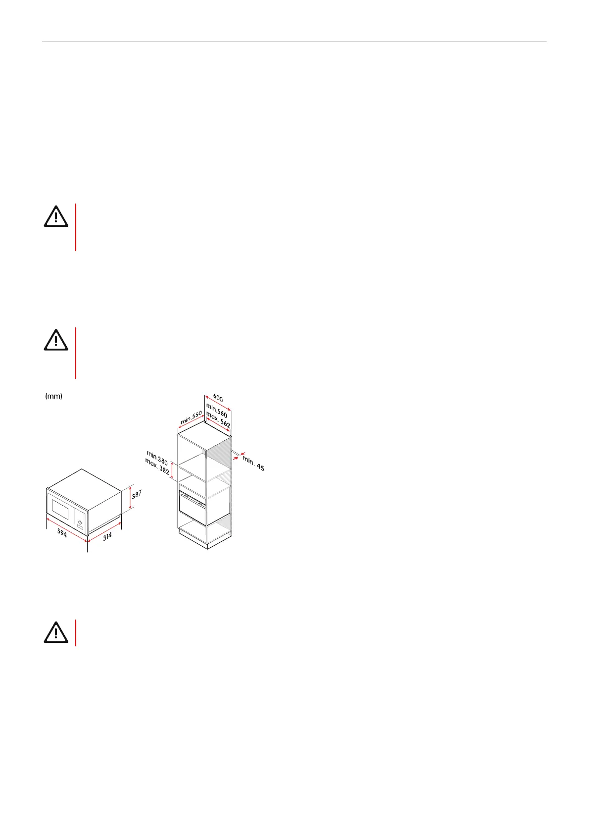 • Diese Mikrowelle ist nur für den Einbau bestimmt. Sie ist nicht für die Verwendung auf der Arbeitsfläche oder in einem