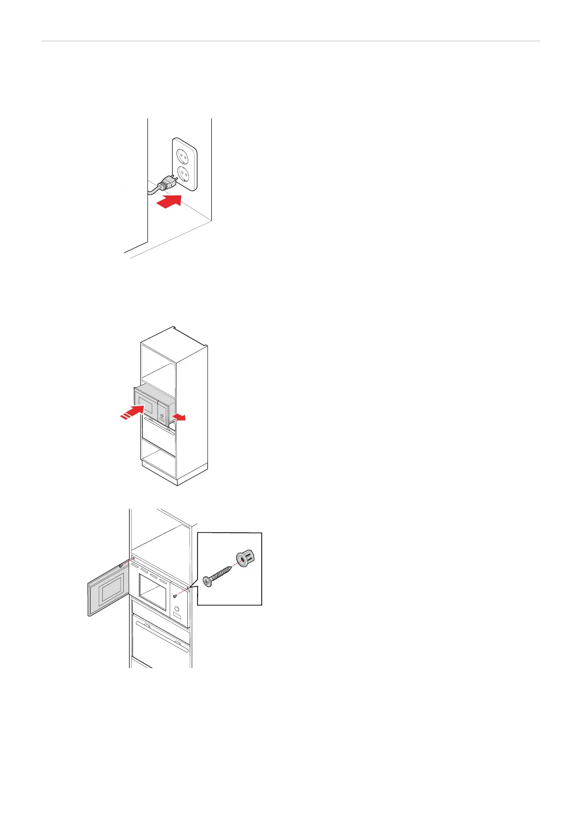 3. Öffnen Sie die Tür und befestigen Sie den Mikrowellenherd mit den mitgelieferten Schrauben.