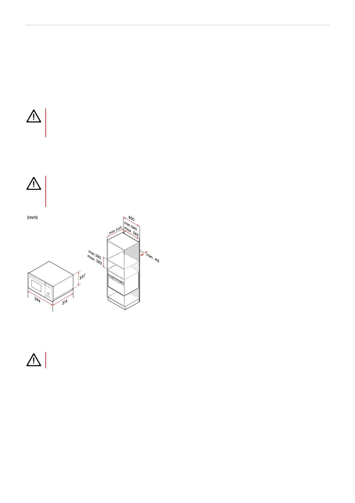 • This oven is intended for built-in use only. It is not intended for counter-top use or for use inside a cupboard.